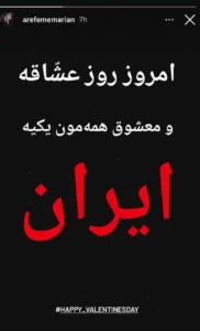 عارفه معماریان، بازیگر نقش طاهره در سریال پایتخت با انتشار یک استوری متفاوت روز ولنتاین را تبریک گفت.