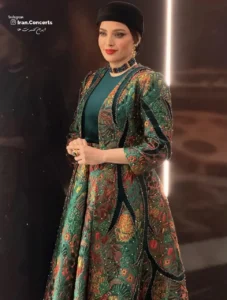 پالت رنگی عمیق: ترکیب رنگهای سبز زمردی، طلایی و قرمز، جلوهای شاهانه و متناسب با یک مراسم رسمی شبانه ایجاد کرده بود.