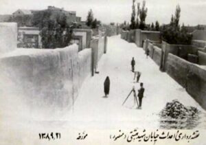 به گزارش سبک ایده آل،این عکس به تاریخ ۲۱ آذر ۱۳۰۸ برداشته شده است. در عکس مشاهده میکنیم که شخصی در حال نقشهبرداری است. این خیابان در آن برهه «منصور» خوانده میشد.