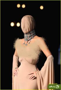 او علاوه بر ماسک، یک گردنبند بزرگ و یک لباس تک رنگ عجیب پوشید.