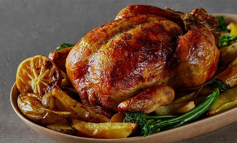 به گزارش سبک ایده آل، با ترکیب کره، سیر، رزماری و آب لیمو، مرغ کامل را مزهدار کرده و در فر برشته کنید. سیبزمینیها را با ادویهها و روغن زیتون همراه کنید.و در کنار سس لیمویی و هویج و قارچ سرو کنید.تا یک وعده کامل و خوشطعم داشته باشید.
