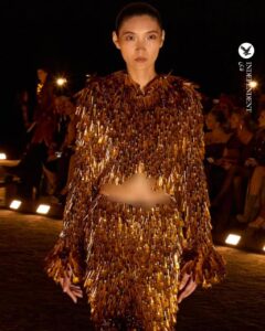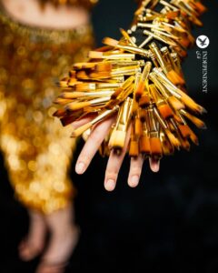 در یکی از خیرهکنندهترین لحظات هفته مد پاریس، مجموعه «رقصنده در تاریکی» اسکیاپارلی با تلفیقی از جسارت، خیال و هنر تجسمی روی صحنه رفت. ظاهر شماره ۳۸ با ژاکتی گلدوزیشده از ششهزار قلمموی طلایی، درخشش بیسابقهای به نمایش بخشید و مدل چین لیه را به نمادی از نور و حرکت بدل کرد.