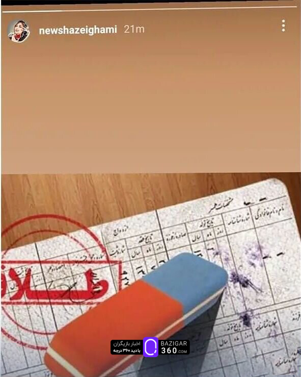 به گزارش سبک ایده آل، بهتازگی نیوشا ضیغمی عکسی از یک شناسنامه با مهر طلاق منتشر کرد، که بعد از ساعاتی آن را حذف کرد.