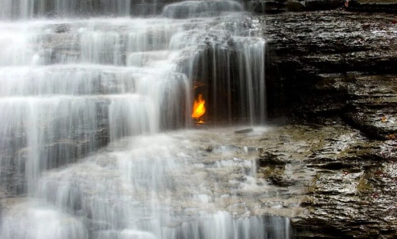 در پارک «چستنات ریج» در ایالت نیویورک، آبشاری شگفتانگیز وجود دارد که نامش را «آبشار شعله جاویدان» گذاشتهاند؛ آبشاری که در دلش آتشی دائمی و خاموشنشدنی شعلهور است.