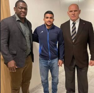 به گزارش سبک ایده‌آل، تصویری از عکس یادگاری غلامرضا فرخی کنار میخایین لوپز کوبایی ، دارنده ۵ طلای المپیک و ۵ طلای جهانی و الکساندر کارلین روس دارنده ۳ طلا، یک نقره المپیک و ۹ طلای جهان ببینید.