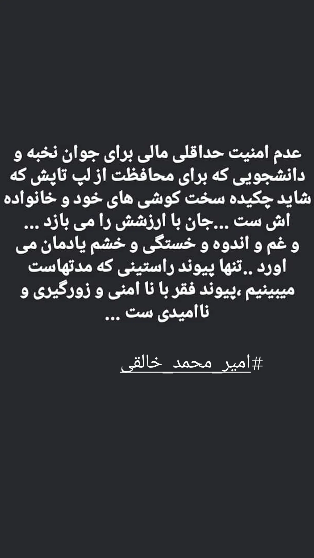 به گزارش سبک ایدهآل، مرگ تلخ این دانشجوی دانشگاه تهران باعث واکنش بسیاری از چهرههای مشهور کشور از جمله امیر جعفری شد.