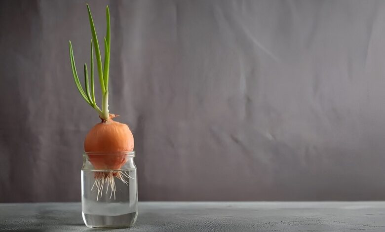 کاهش دورریز مواد غذایی: به جای دور ریختن، پیاز دوباره زنده می‌شود.