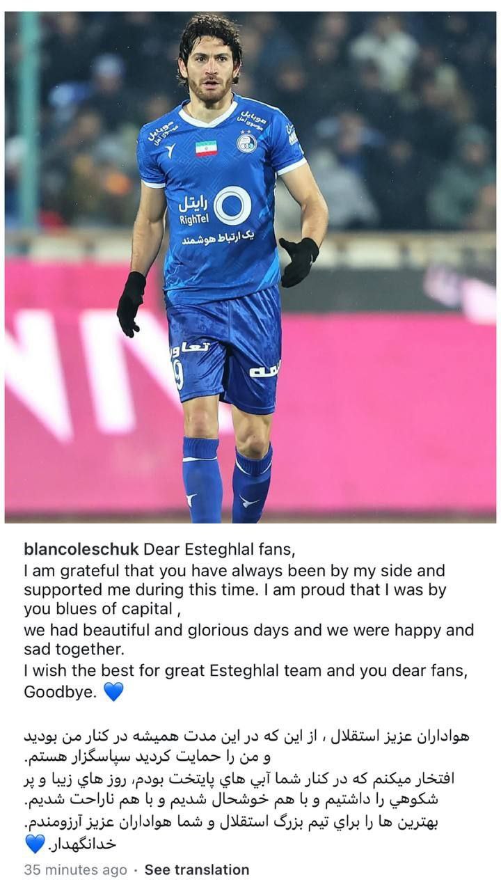 گوستاوو بلانکو پس از گذشت یک سال با انتشار پستی خبر خداحافظی از تیم محبوب استقلال را به گوش طرفداران این تیم رساند.