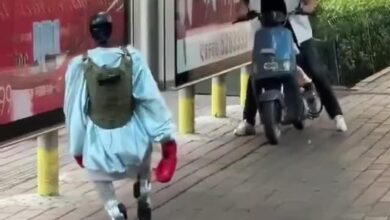 حمله عجیب ربات خشمگین به پیک موتوری در خیابانهای مسکو + فیلم